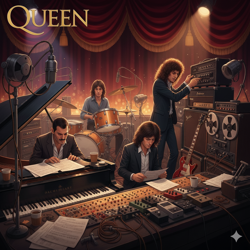 Mereka kerja hampir tanpa tidur. Setiap hari bisa 10–12 jam di depan mixer, menumpuk layer vokal, gitar, dan harmoni yang nggak ada habisnya. Freddie datang ke studio dengan sketsa aneh berjudul Bohemian Rhapsody, lagu enam menit tanpa chorus yang dipenuhi perubahan tempo dan gaya. Orang-orang di sekitarnya menganggapnya gila. Tapi buat Freddie, lagu itu adalah “teater dalam bentuk suara.”