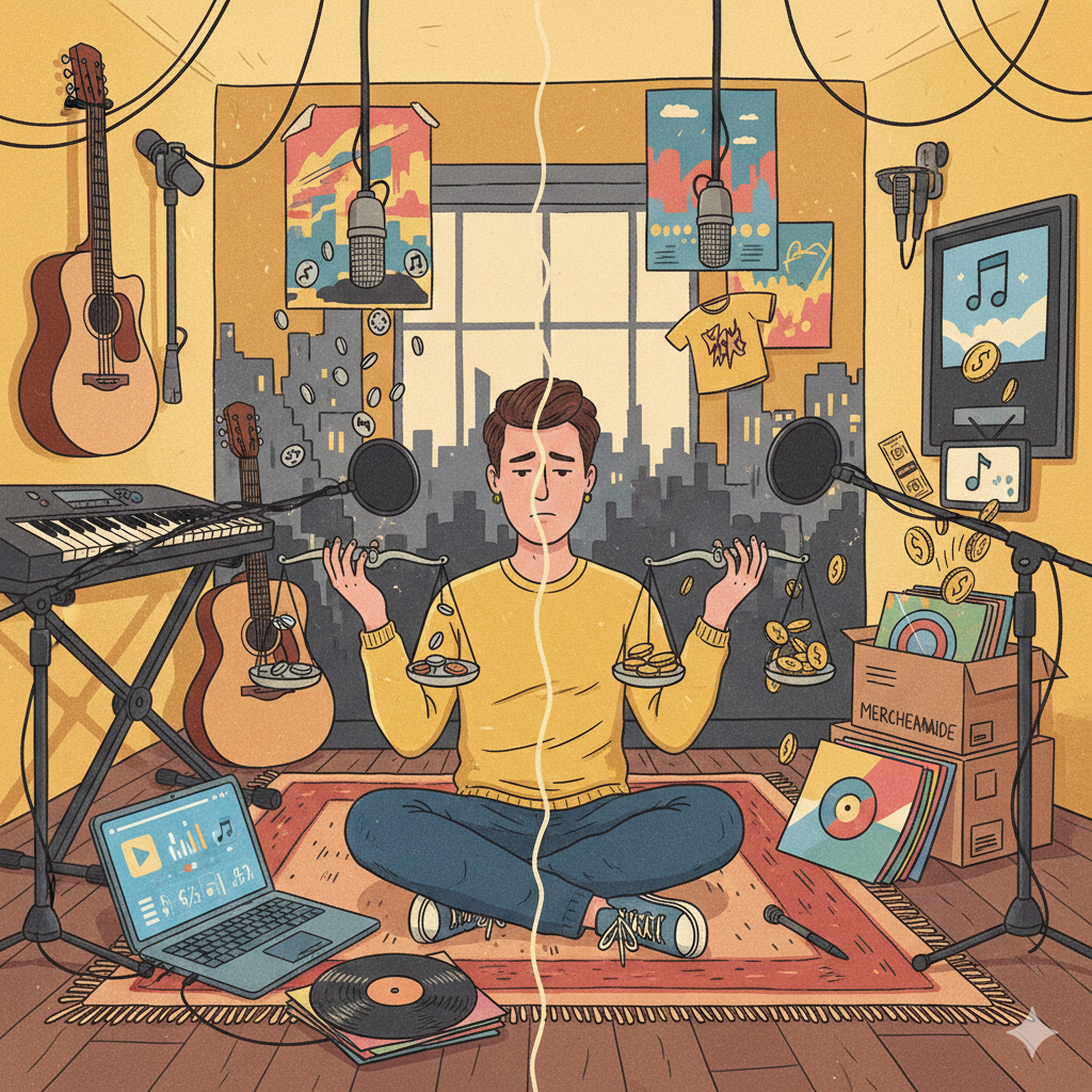 Musik adalah inti, tetapi untuk hidup, musisi membutuhkan ekosistem. Lagu membuka pintu, tetapi panggung mengisi dompet. Streaming mendatangkan audiens, tetapi merchandise membuat audiens itu bertahan. Brand deal memperluas pengaruh, tetapi publishing menyiapkan masa depan. Dan komunitas membuat semua itu stabil.