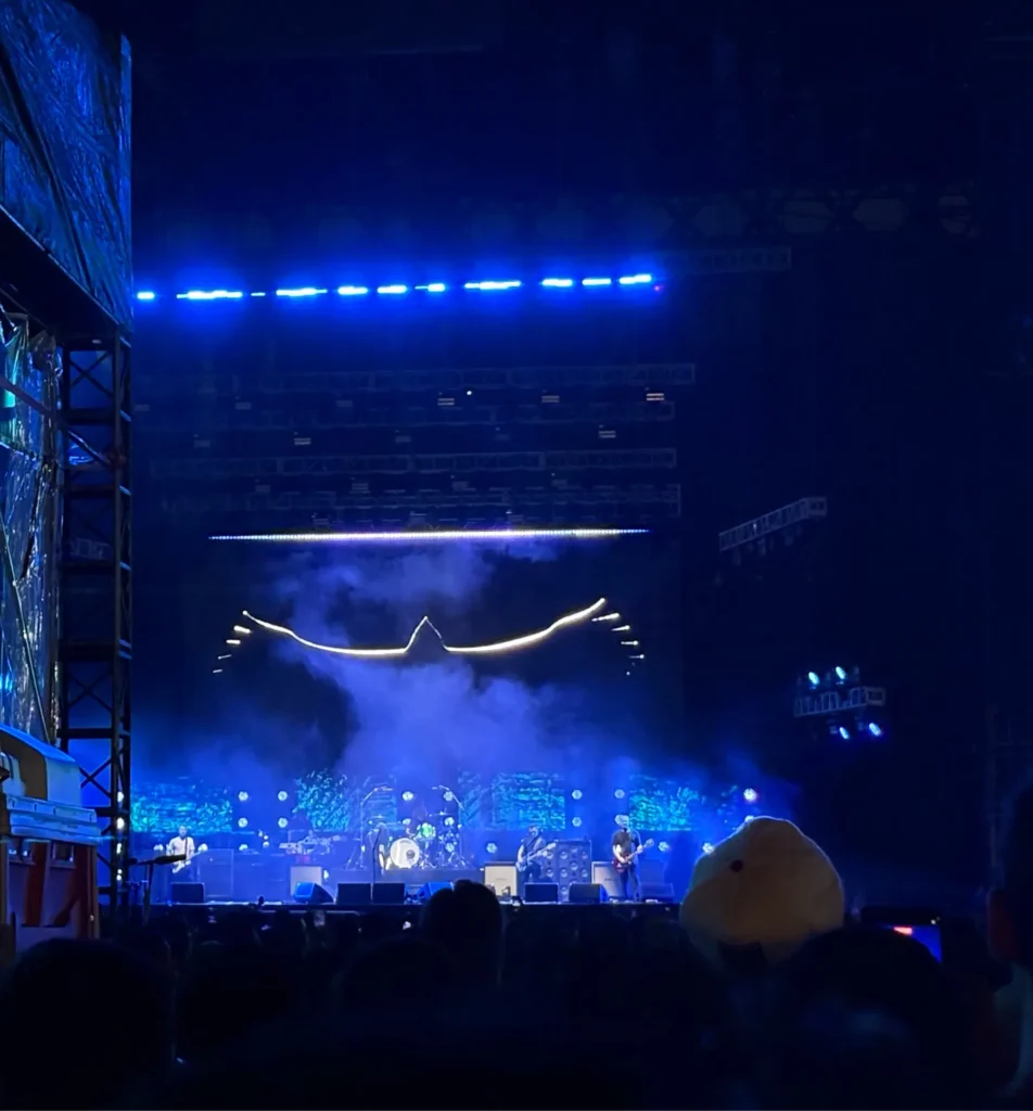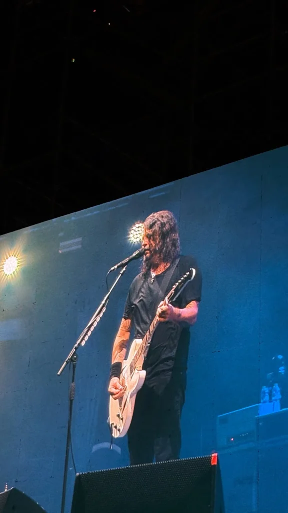 Tidak ada gimmick berlebihan di panggung Foo Fighters malam itu. Visual simpel tapi artsy, lampu sorot dramatis, dan energi murni rock & roll jadi senjatanya. Dave Grohl — yang nyaris tidak pernah kehabisan tenaga — berlari, menjerit, bercanda, lalu kembali menghantam gitar seakan umur hanyalah angka.