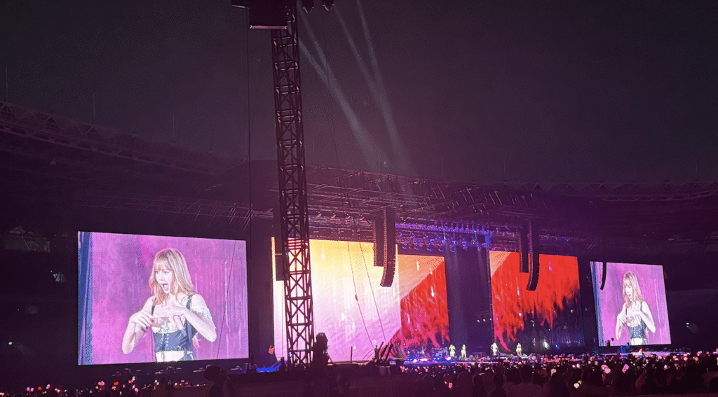 Ribuan lampu berwarna pink menari di udara, suara tawa, teriakan, dan nyanyian bergulung seperti ombak di Stadion Utama Gelora Bung Karno.