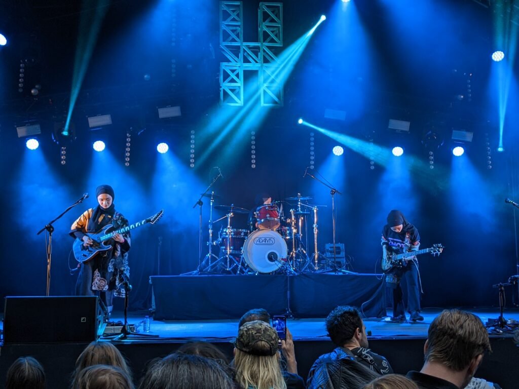 Lalu muncullah fenomena yang jadi penutup lingkaran panjang sejarah ini: Voice of Baceprot (VoB). Tiga perempuan muda berhijab dari Garut yang awalnya di-bully karena main metal, dilempari batu, bahkan dianggap melanggar norma. Tapi mereka tetap main. Mereka tur Eropa, tampil di Amerika, dan mencapai panggung yang nggak pernah dicapai band metal Indonesia sebelumnya: Glastonbury 2024.
