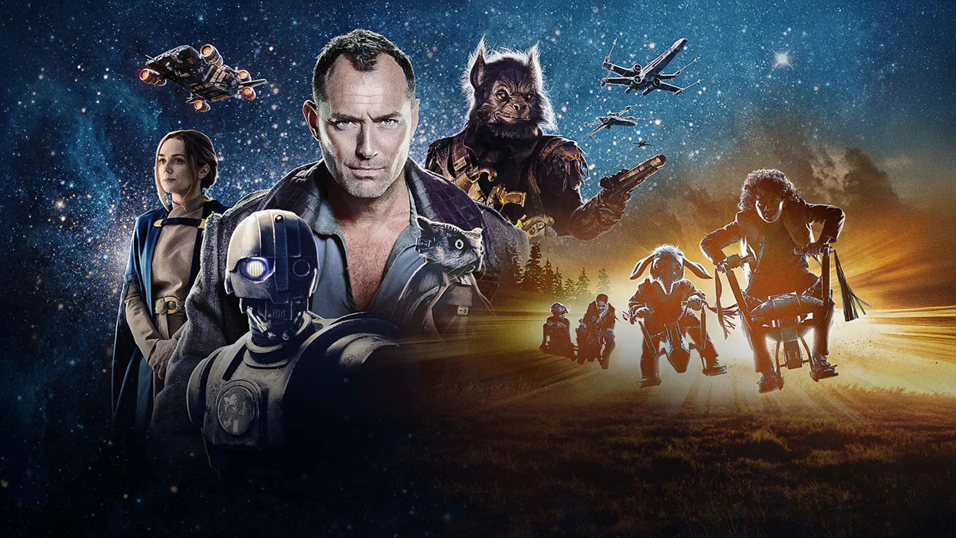 Ada Jude Law yang jadi mentor misterius. Jangan bayangkan dia bakal sekeren Obi-Wan atau sekarismatik Mando. Dia lebih kayak guru yang rada malas, tapi entah gimana tetap bikin orang tertarik buat mendengar omongannya.